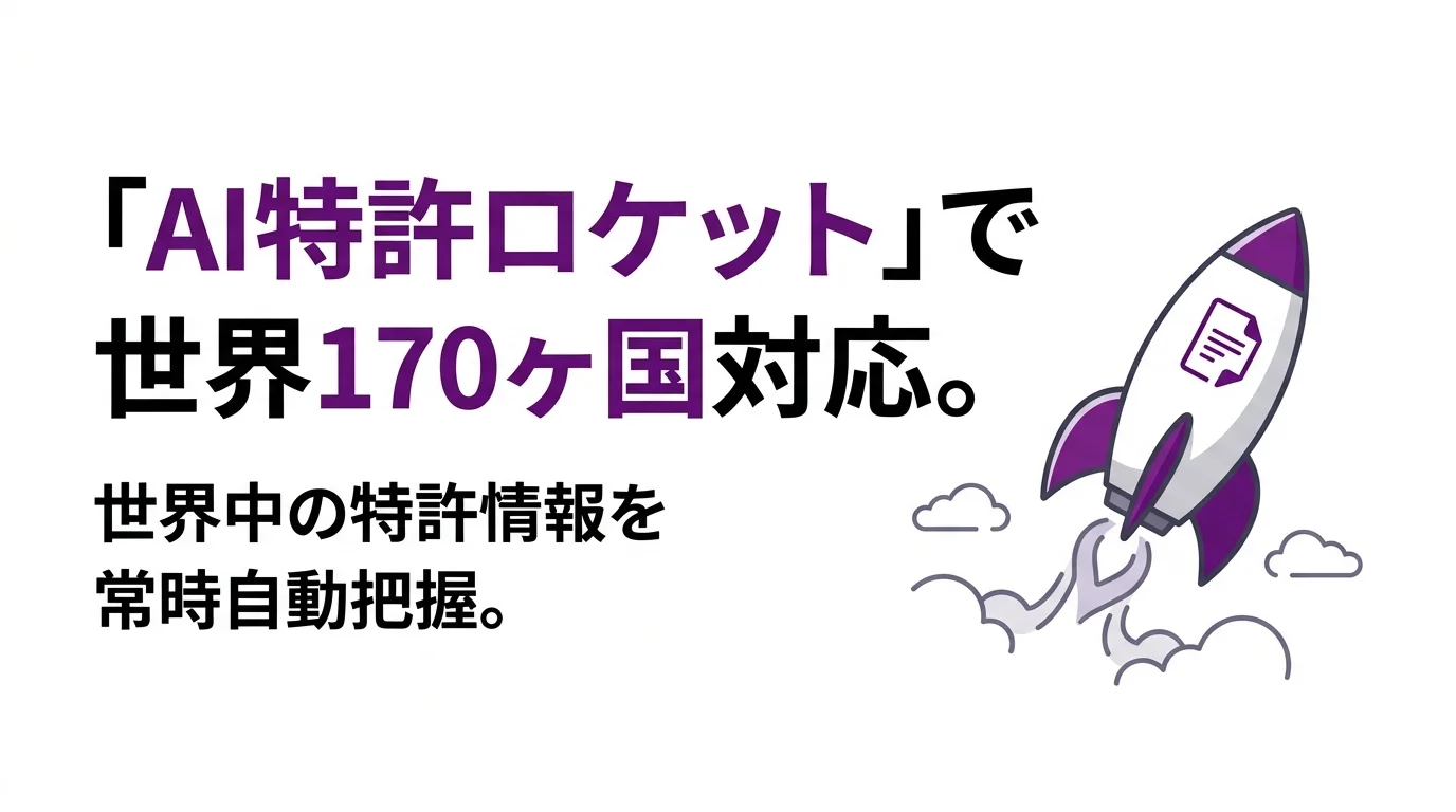「AI特許ロケット」世界170ヶ国対応 特許情報を常時自動把握